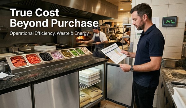 A pizza prep fridge is one of the lower-cost capital items in a commercial kitchen fit-out, but it runs 24 hours a day, 365 days a year. That makes energy efficiency the largest variable in total cost of ownership - not the purchase price. Two units at the same sticker price can differ by $1,000+ in energy costs over 5 years depending on compressor quality and insulation thickness. This guide breaks down every cost line so you can build an accurate approval case.