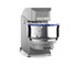 Mixer with a bottom discharge system. The dough is unloaded onto a conveyor belt or into a moveable bowl. The mixing system may entail either an MD-Line spiral or dual tool (MDW-Line). This compact system features two or more series of mixers that feed the dough directly into the production lines, while an optional extension offers a system for letting the dough rest. The machine was designed with special attention paid to various aspects of hygiene and functionality. In particular, the cleaning of the bowl closing cap was a priority.